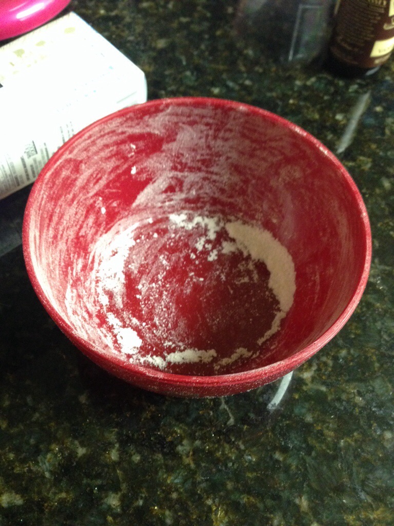 Now sugar cookies should stay in the fridge for at least 8 hrs. I was impatient and the batter tasted delicious. So they only stayed int the fridge for an hour. So you’re going to want to flour a bowl and add the mix in. It will be sticky, so flour generously. If you’re concerned about ruining flavor you can also make a flour/powdered sugar combo and use that.