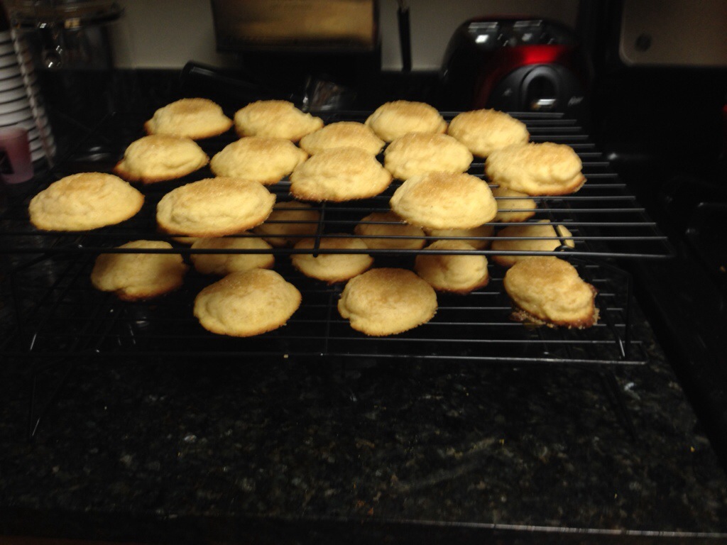 Cookies will take about 7-8 minutes. I cooked for 9 and it was a tad too much. When done to your liking, take out put on cookie rack. Let cool. Enjoy!!