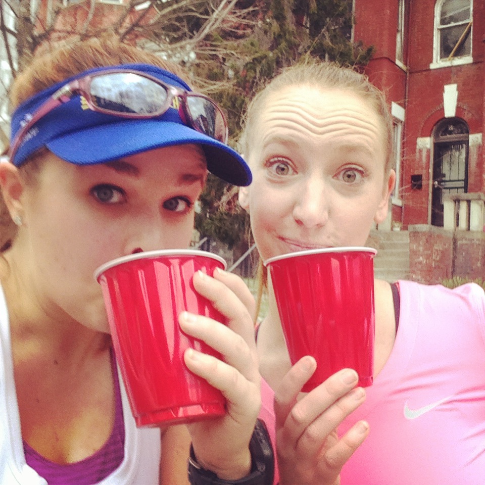 From 6-11 the run/walk ratio was working for us. The crowd support, fun signs, and general DC atmosphere was fantastic. We ran a large portion of the race near a man wearing a Nationals uniform and juggling mini bats. I think that says it all. Around mile 9 we saw a group of people giving out beer that seemed reputable, so we helped ourselves to some.