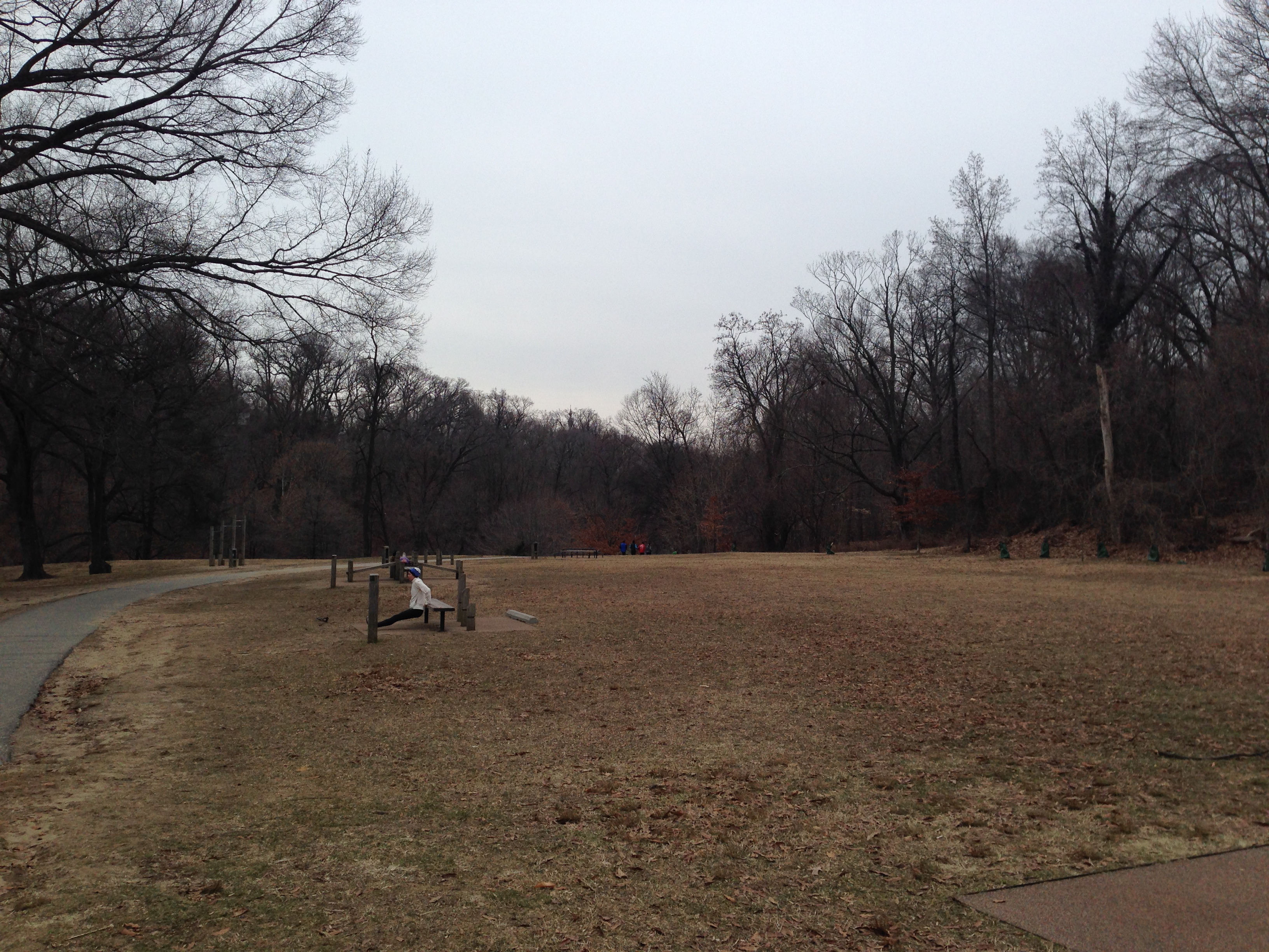 I found many bridges and large hillsides. Here I stumbled upon an exercise park… that people were actually using! So for good measure I did a few push ups. It seemed appropriate.
