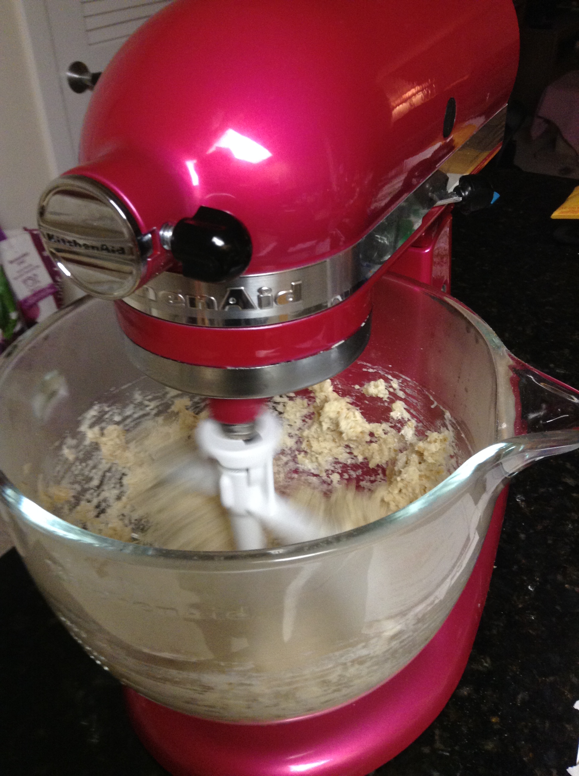 Mix Flour, Oats, Sugar, Baking Powder, & Salt together. It should form almost a paste, because the oats are slightly sticky.