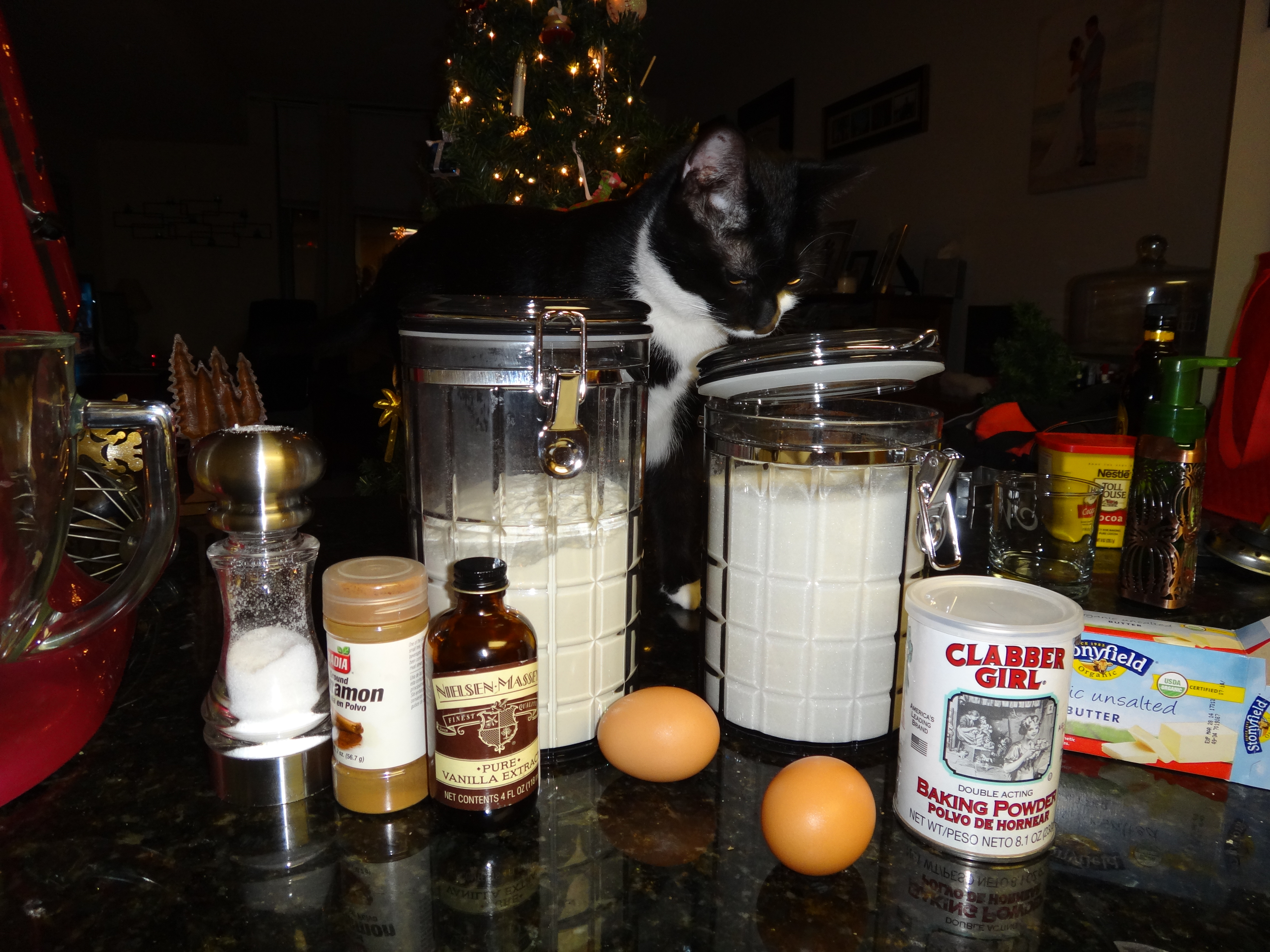 Ingredients for Sugar Cookies… not the cat (that’s maggie)